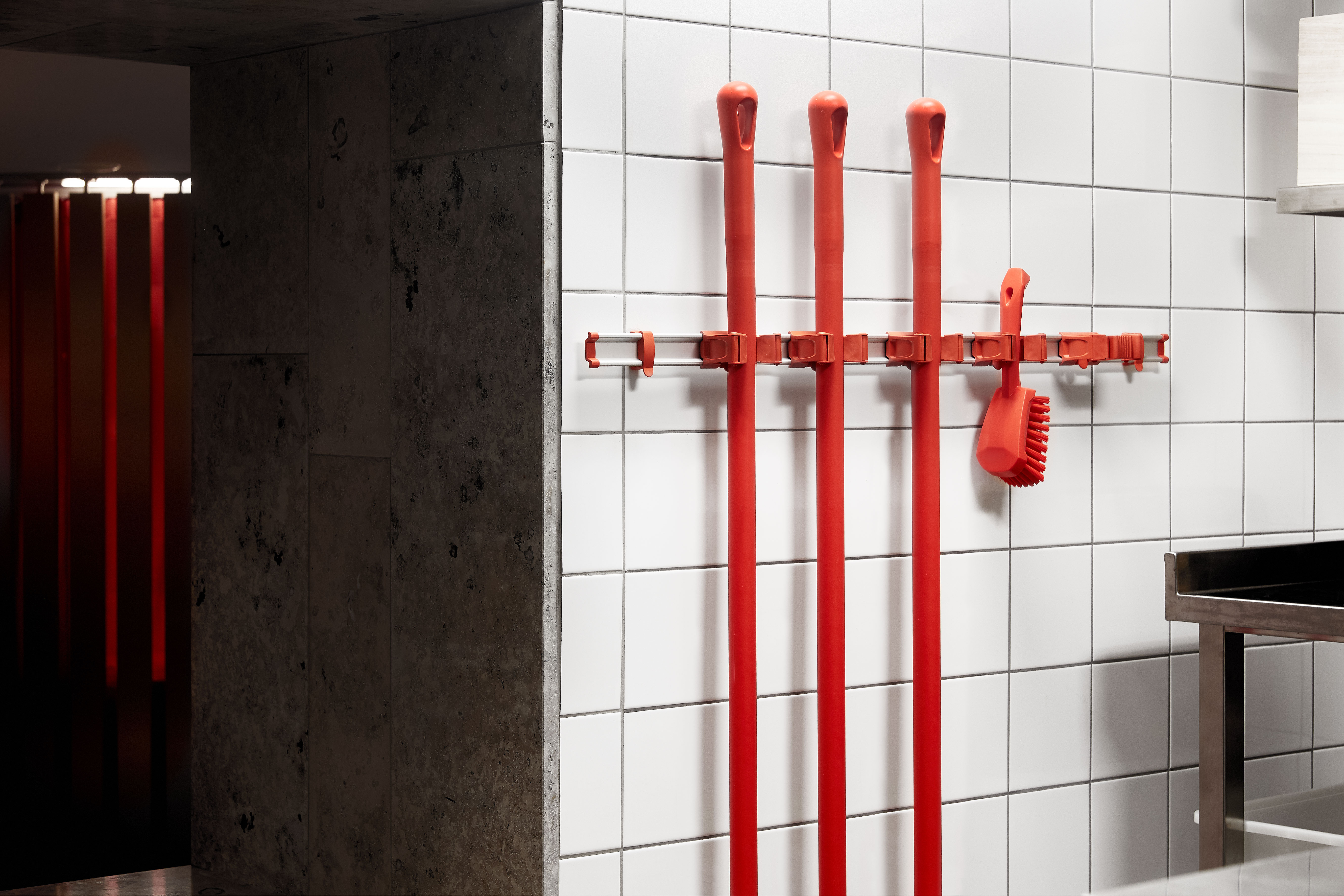 Mindössze a kisméretű rögzítőelemeket kell a falra felcsavarozni, a tartósínt ezekre kell rácsatolni. Helytakarékos és kimondottan higiénikus megoldás, hiszen a sín mögötti falfelület is könnyen tisztán tartható marad. A tartóelemek univerzálisak, egészen eltérő átmérőjű eszközök is tárolhatók rajtuk, a sínek pedig gond nélkül helyezhetők egymás mellé, mintegy meghosszabbítva a tartórendszert. A színkódolás természetesen lehetséges. Az eszközök elhelyezése és elvétele egyszerű, és látszik, ha valamelyik eszköz hiányzik. A tartók cserélhetők, eltávolíthatóak, így nem probléma, ha idővel más eszközöket használnak ugyanazon a helyen. Kis helyigényű, kialakításából fakadóan kevésbé kitett a sérüléseknek.