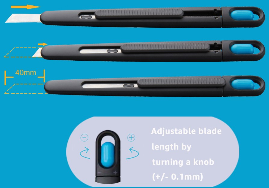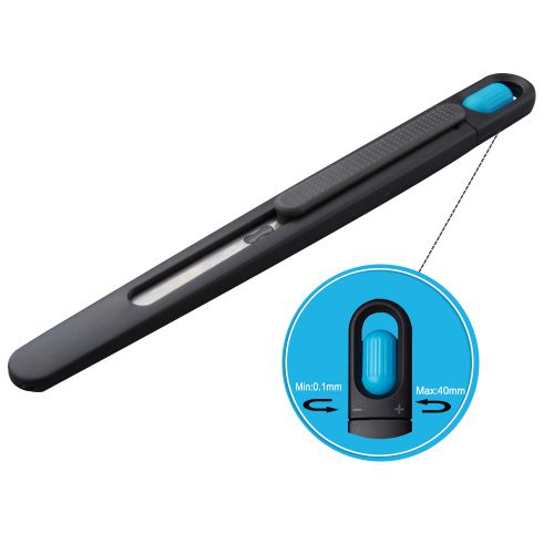 Kezdőlap » Biztonságikés, csomagbontókés » Safety Knife fedettpenge » Vékony, egészpengés (nem törhető) hegyes, visszahúzható precíziós szike